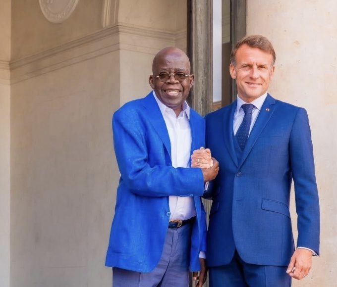 President Bola Tinubu with French President Emmanuel Macron during a working...